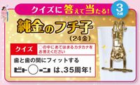 ![]() 【ライオン】ビトイーンライオン35周年ありがとう!フチ子限定グッズプレゼントキャンペーン クイズに答えて当たる! 純金のフチ子 24金(3名様) クイズ:歯と歯の間にフィットする ビト○ーンは、35周年! 専用応募ハガキ、または郵便ハガキに下記クイズの答えをご記入し、必要事項(郵便番号・ご住所・お名前(漢字とフリガナ)・お電話番号・性別・年齢・応募コース)を明記のうえ、所定の郵便料金の切手を貼り、応募宛先までご応募ください。 〒540-8693 日本郵便株式会社大阪東郵便局 私書箱396号 『ビトイーン ライオン 35周年ありがとう!フチ子限定グッズ プレゼントキャンペーン』係 【応募ハガキダウンロード/PDF】 |