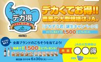 [ 2015/06/30 当日消印有効 ] 【JA全農】「デカぞう君」誕生キャンペーン!! Aコース:国産具材のおもてなし 夕食のお惣菜詰め合せセット Bコース:国産具材のおばんざい 夕食の副菜いろいろ詰め合わせセット Cコース:国産ワイン「日本の葡萄酒」2本セット (総計1500名様) WEBでも応募可能 クイズ: JAの大型規格は ○○得 ヒント:デカぞうくんが目印です。 専用ハガキまたは郵便ハガキに、氏名(フリガナ)、郵便番号、住所、電話番号、JA名、栽培面積、よく使う大型規格農薬、クイズの答えと希望賞品コースを記入の上、下記キャンペーン事務局宛にご応募ください。 〒106-0032 東京都港区六本木1-7-27 全特六本木ビルEAST3F 株式会社全新企画社 「デカぞう君」誕生キャンペーン係 |