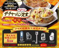 【味の素冷凍食品】おまたせ! ザ・チャーハン定食 みんなで体感キャンペーンみんな"大満足!"豪華最新家電(40万円相当) まとめて(全商品5点セット)プレゼント!…5名様 ◎デロンギ マグニフィカSカプチーノコンパクト全自動エスプレッソマシン ◎Dyson V6 クイズ: 味の素冷凍食品の「ザ・チャーハン」は、 大満足の2人前○○○gで新登場! 専用応募ハガキもしくは郵便ハガキに、必要事項(クイズの答え、郵便番号、住所、氏名、年齢、電話番号、性別)をご記入のうえ、郵送にてご応募ください。 〒104-8680 日本郵便株式会社 晴海郵便局 郵便私書箱80号 おまたせ! ザ・チャーハン定食 みんなで体感キャンペーン クイズに答えて当てよう! 係行 【応募ハガキダウンロード/PDF】 |